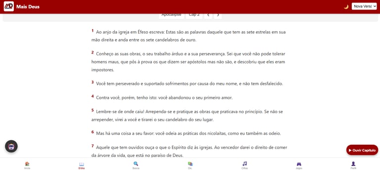 O Mais Deus - Bíblia Online tem como missão disponibilizar a Palavra de Deus de forma acessível, intuitiva e gratuita para todos os usuários da internet, permitindo a consulta em diversas versões e traduções.