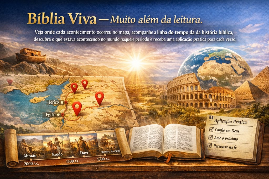 A Bíblia é mais do que um livro — é uma narrativa profunda que une história, cultura, fé e aplicação prática para hoje. Pensando nisso, nós do MaisDeus.com criamos a Bíblia Viva, uma ferramenta online que transforma a leitura das Escrituras em uma experiência completa, contextualizada e prática para a sua vida..